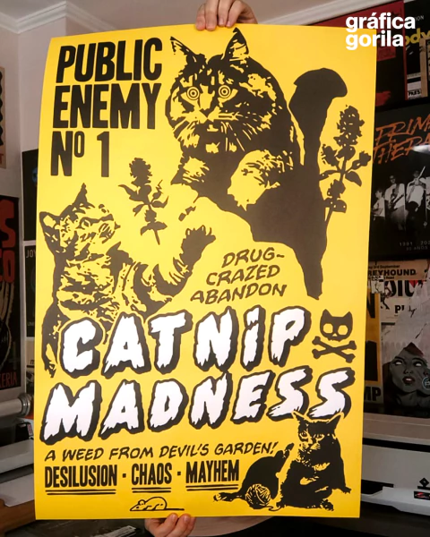 Transforme sua decoração com este incrível pôster que ilustra gatos viciados em catnip!