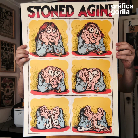 Adicione um toque de arte icônica à sua decoração com o pôster Stoned Agin! de Robert Crumb. Este pôster é ideal para os amantes da cultura pop e do underground, trazendo um estilo único e ousado para suas paredes.